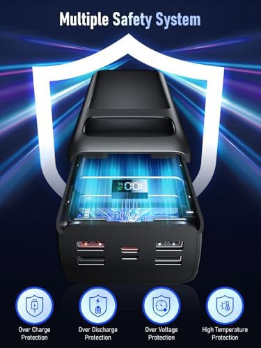 - Grande capacité 50000mAh : Arrêt automatique en cas de surchauffe ou de court-circuit, idéal pour le camping et la randonnée.