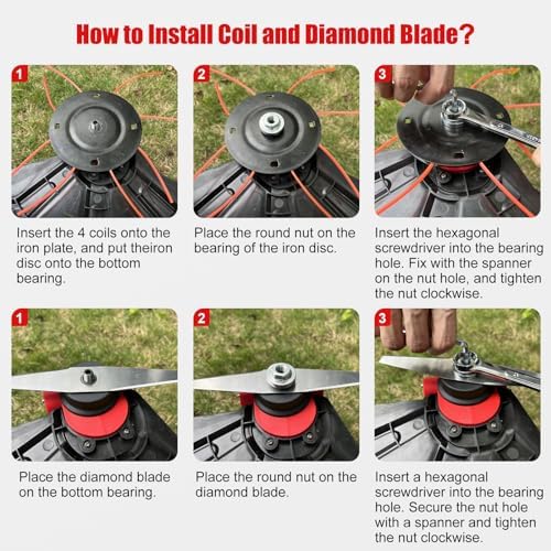 - Facile à assembler avec tous les accessoires inclus, y compris lames métalliques et lignes de coupe.