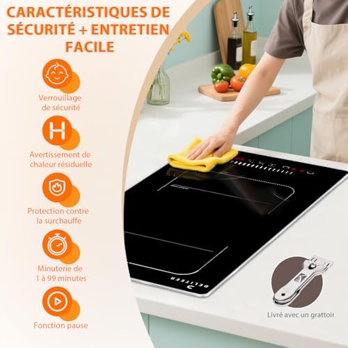 Cette plaque induction à 2 feux est un véritable atout pour les chefs en quête de précision. La commande à glissière permet un contrôle parfait de la température, idéal pour saisir des steaks ou mijoter des sauces. La minuterie de 99 minutes est pratique pour des cuissons longues.