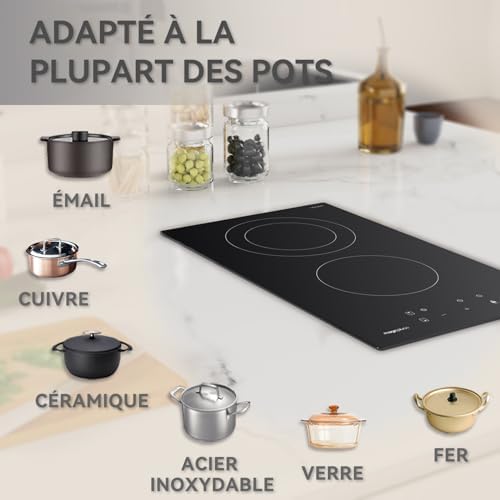 Cette plaque induction encastrable à 2 feux séduit par son design moderne qui s'intègre parfaitement dans ma cuisine contemporaine. Elle chauffe rapidement, idéale pour préparer des repas en famille.