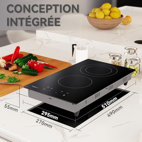 Plaque induction 2 feux encastrable avec fonctions avancées et design moderne