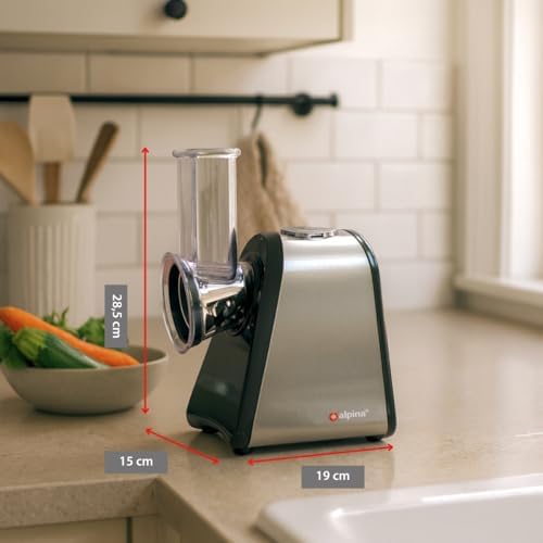 Cette râpe électrique s'intègre parfaitement dans ma cuisine moderne grâce à son design élégant. Les 4 lames offrent une belle variété pour râper légumes et fruits. J'ai apprécié la protection contre la surchauffe qui rassure lors d'une utilisation prolongée.